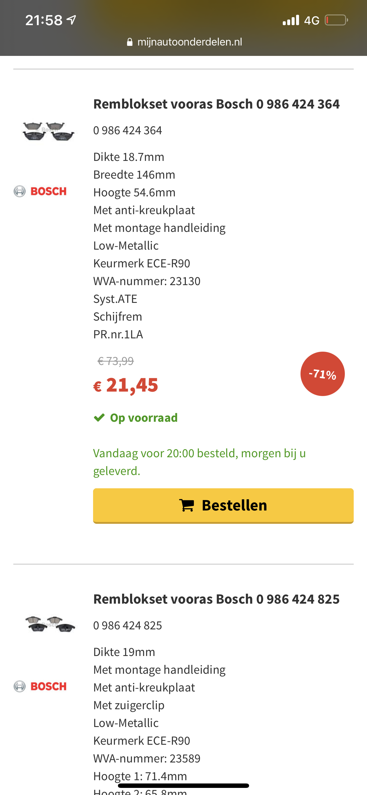 Ik ben nu aan het kijken voor nieuwe schijven en blokken. Voor de schijven had ik de bosch in gedachten. Maar bij de blokken zie ik 2 foto’s met zo lijkt verschillende montage plaatjes. Weet iemand welke ik moet hebben?