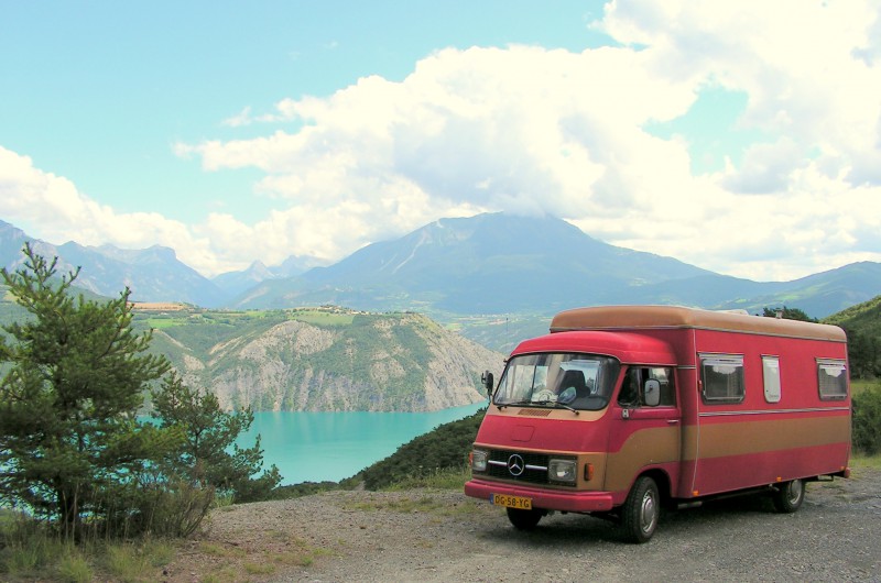 Elektrisch Diesel Overigens wel een plek met nu een minder mooie historie. Een tijd nadat wij de foto daar genomen hadden, heeft die jonge piloot van Lufthansa die berg op de achtergrond gebruikt voor zijn lugubere daad. Als de fotografen van de Sono Sion dat hadden beseft, vraag ik me af of ze zo'n promotiefoto daar nog zouden maken...