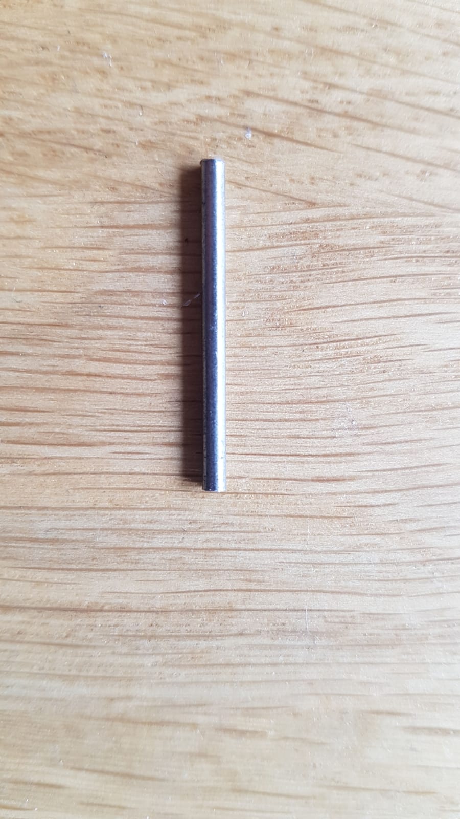 Het is 25 mm. lang en ca. 2 mm. dik, je kan zien dat 1 kan is afgewerkt, de andere kant heeft een grijs breukvlak het is dus ergens van afgebroken.