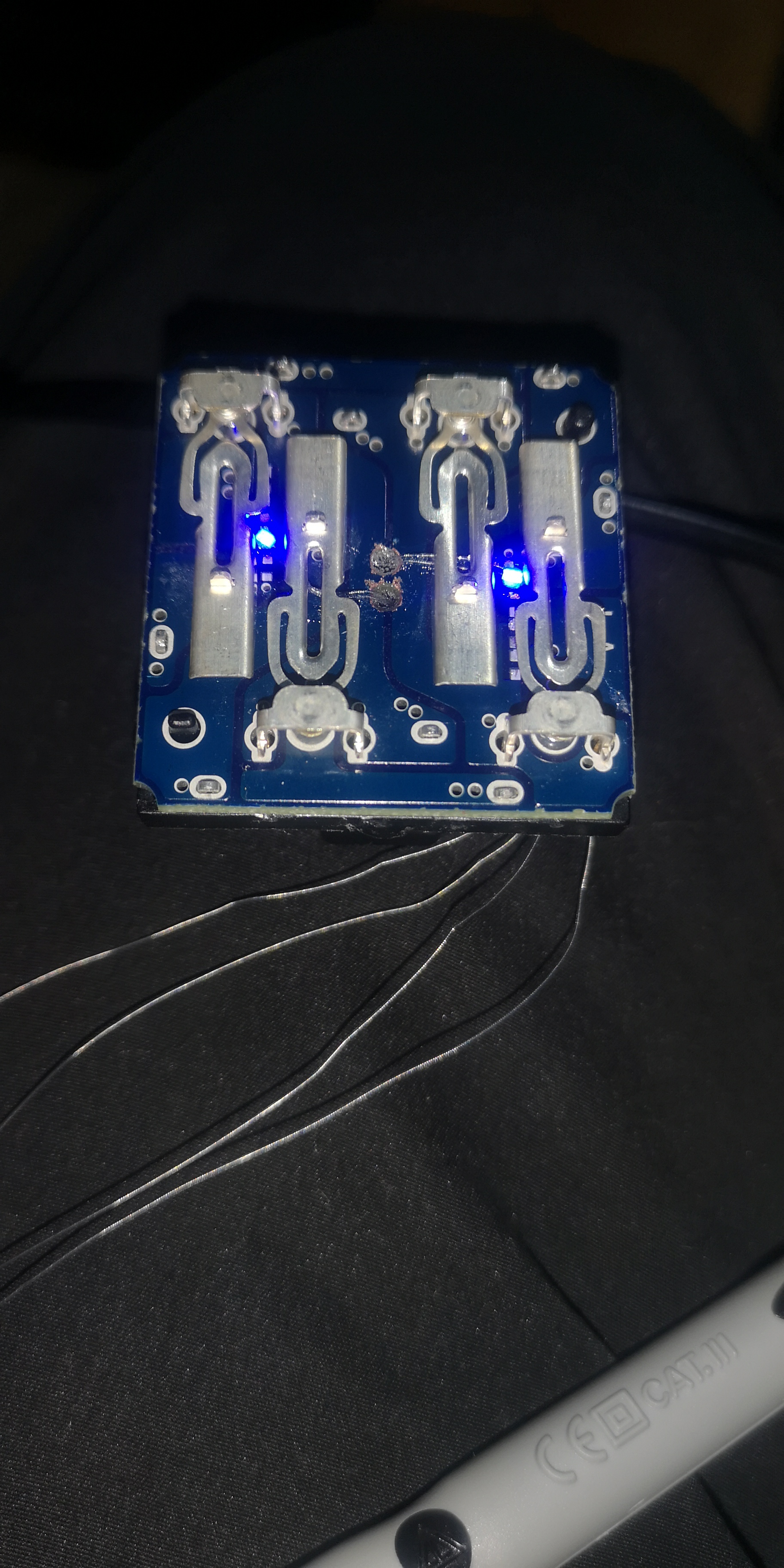 Ook heb ik al op een raamschakelaar de blauwe microleds geplakt, en de bedrading door de printplaat heen gemonteerd, en ook door de behuizing van de schakelaar gevoerd.