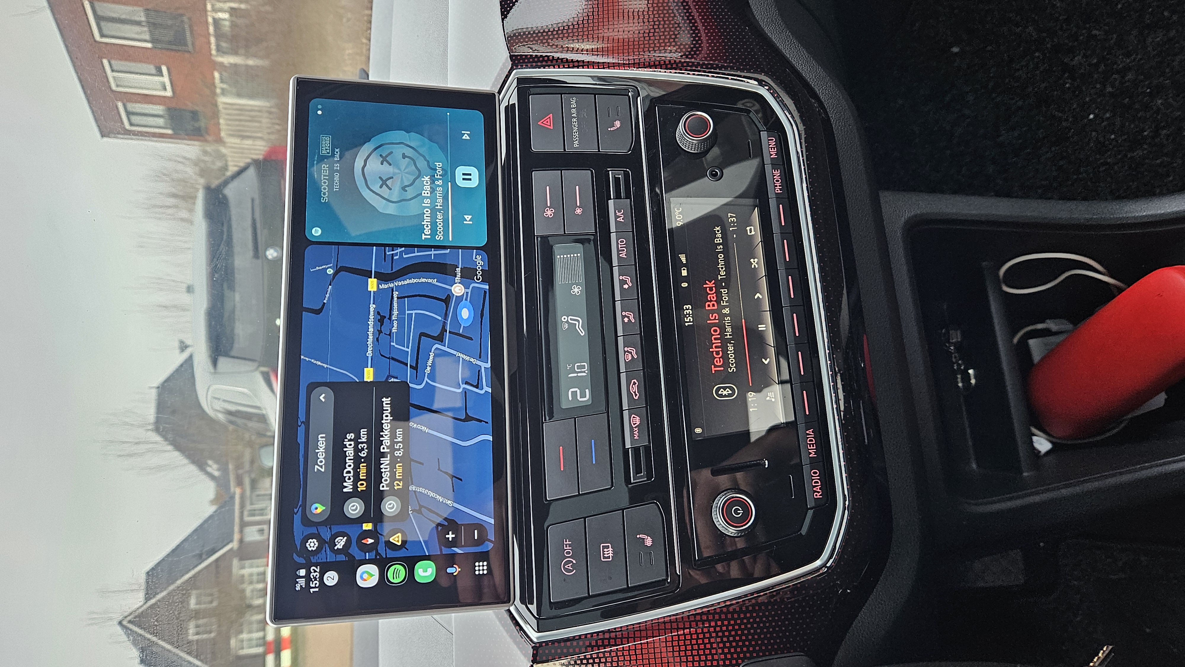 Ik ben nog op zoek naar een carplay systeem dat dit niet heeft. Op YT staat een filmpje van een gast die een carplay scherm gemonteerd heeft onder de radio, dat valt inderdaad minder op maar dan moet je steeds naar beneden kijken. Dat is niet ideaal.