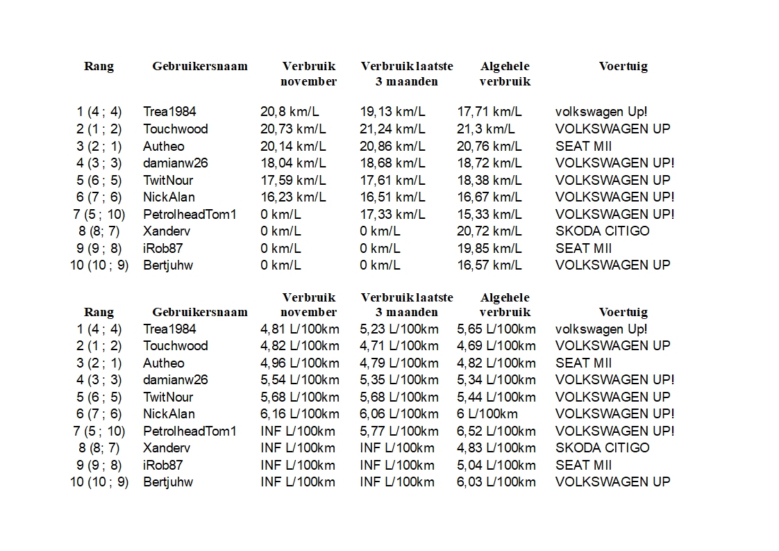 Hier de resultaten van November. Met een verrassende sprint naar voren door Trea!