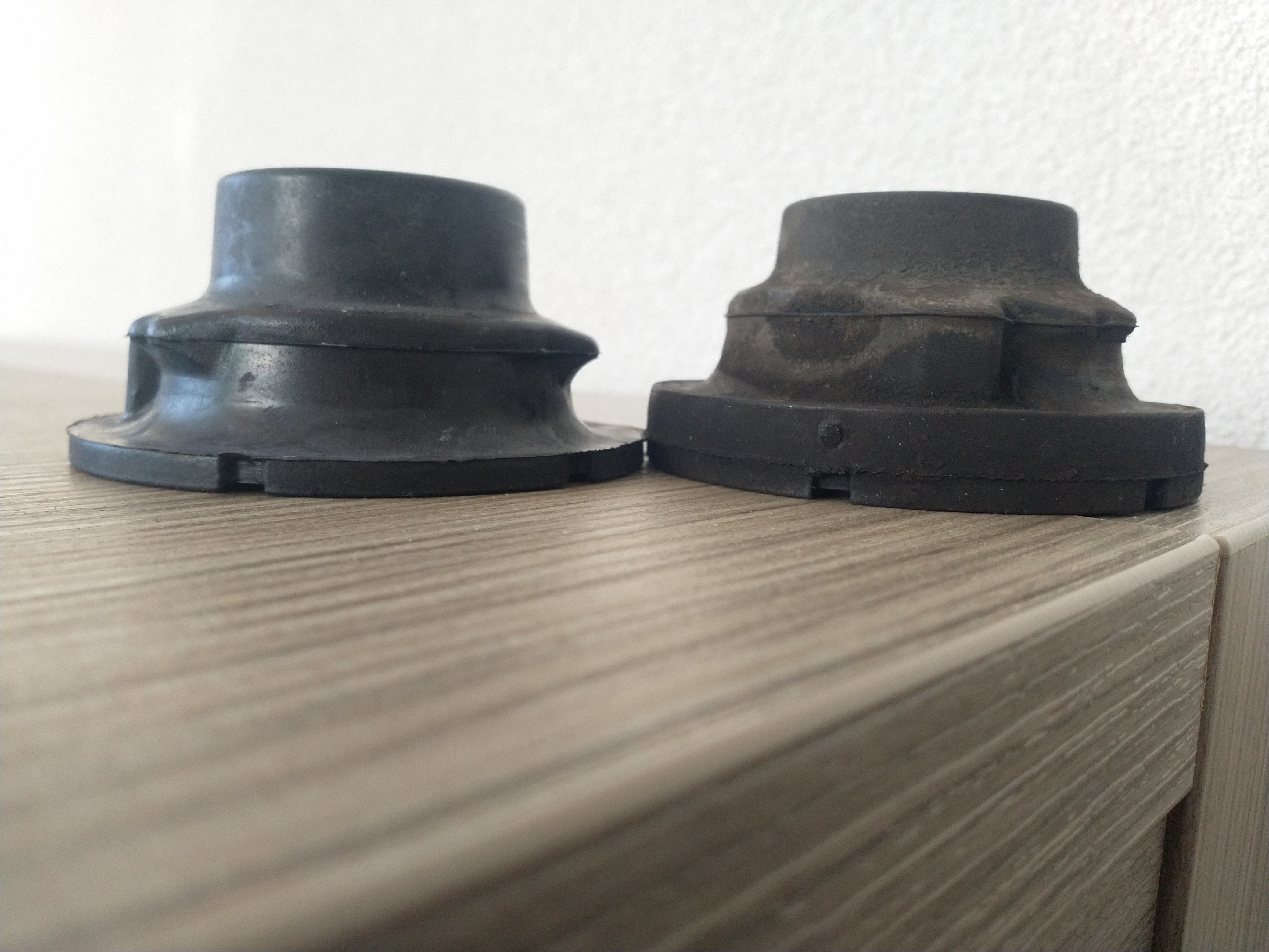 Aangezien alle beetjes helpen ook maar smallere rubbers geplaats Zodat hij mooi vlak staat met de eibach verlaging.links nieuw en rechts de originele van een Up