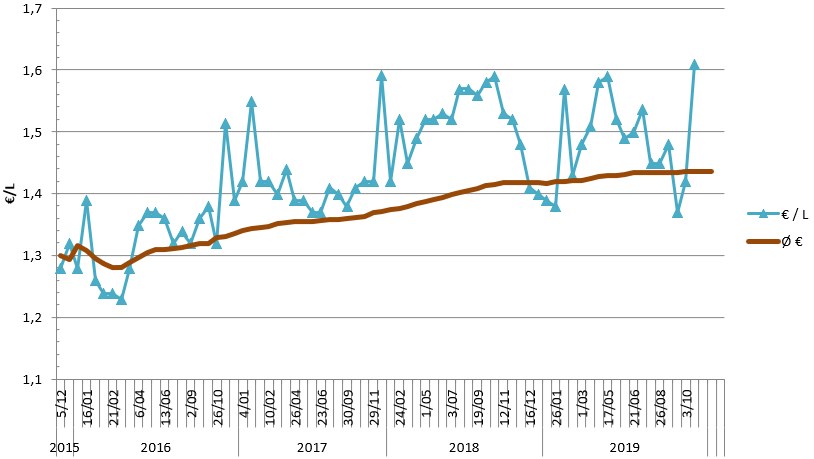 Zie het benzineverbuik van onze High-Up (begin december 2019 vier jaar oud) met nu een kleine 44 duizend kilometer gereden. Gemiddeld verbruik over vier jaar: 1 op 20,1 (5,0 liter / 100 km).