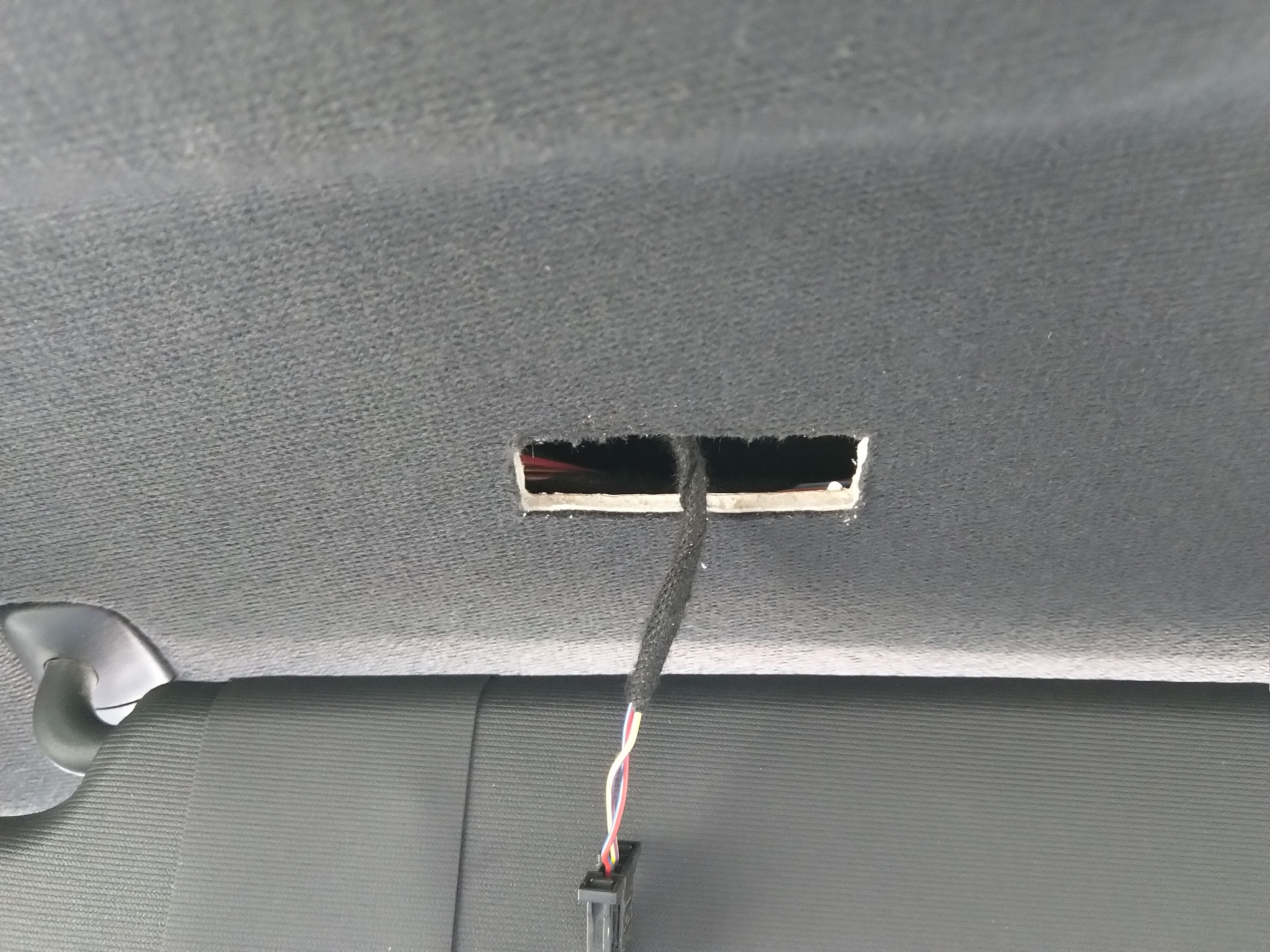 Ik had al een simpel kabelboompje liggen voor de homelink maar als je dan toch achter de hemel moet zijn maar gelijk de stroomvoorziening gelegd voor de make-up verlichting. Nu wachten tot de make-up verlichting binnenkomt en dan kan het mes weer in de hemel.