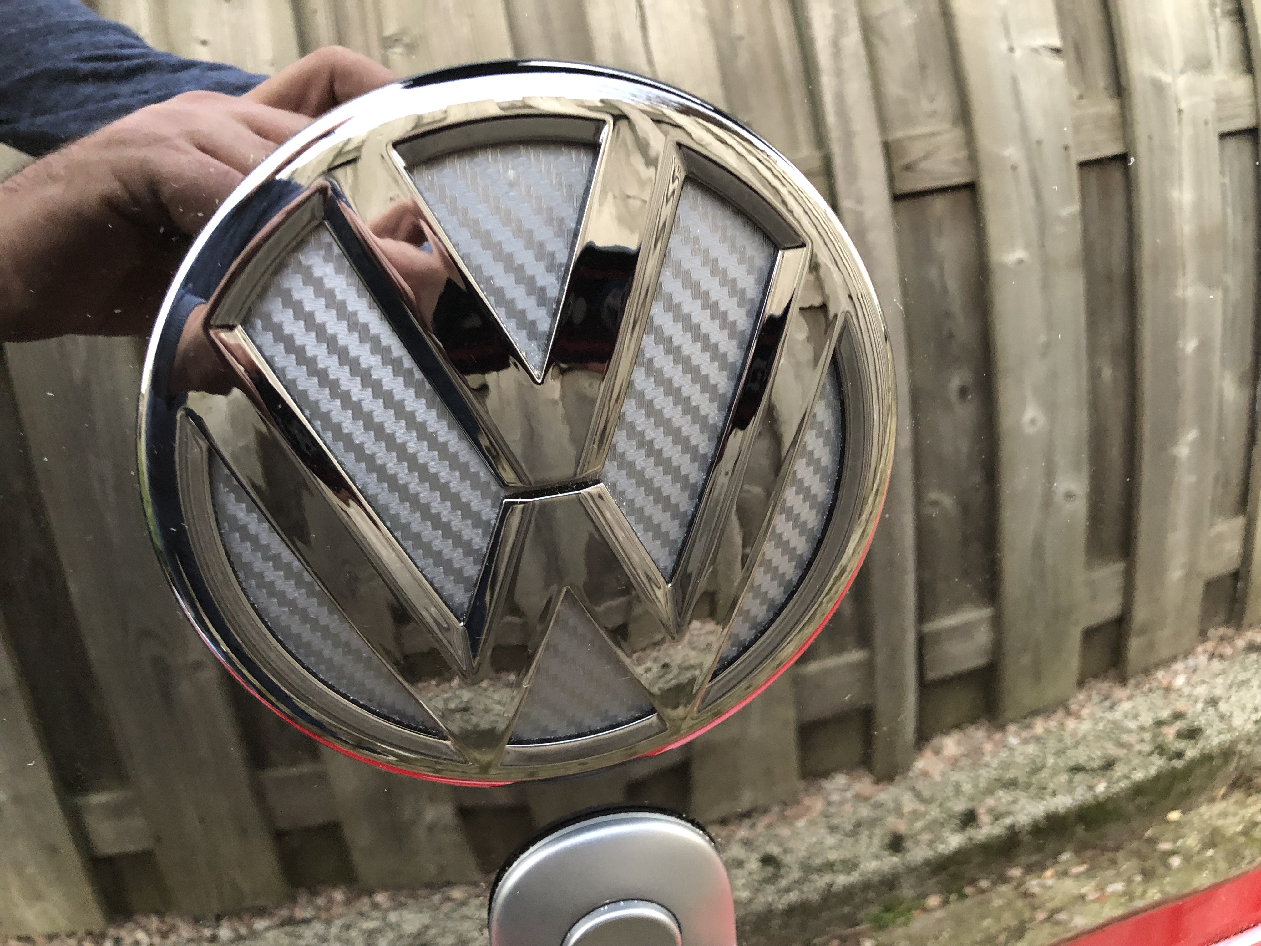 toen ik de auto kreeg heb ik alle logo's zwart laten spuiten ik vond al dat chrome niet mooi.