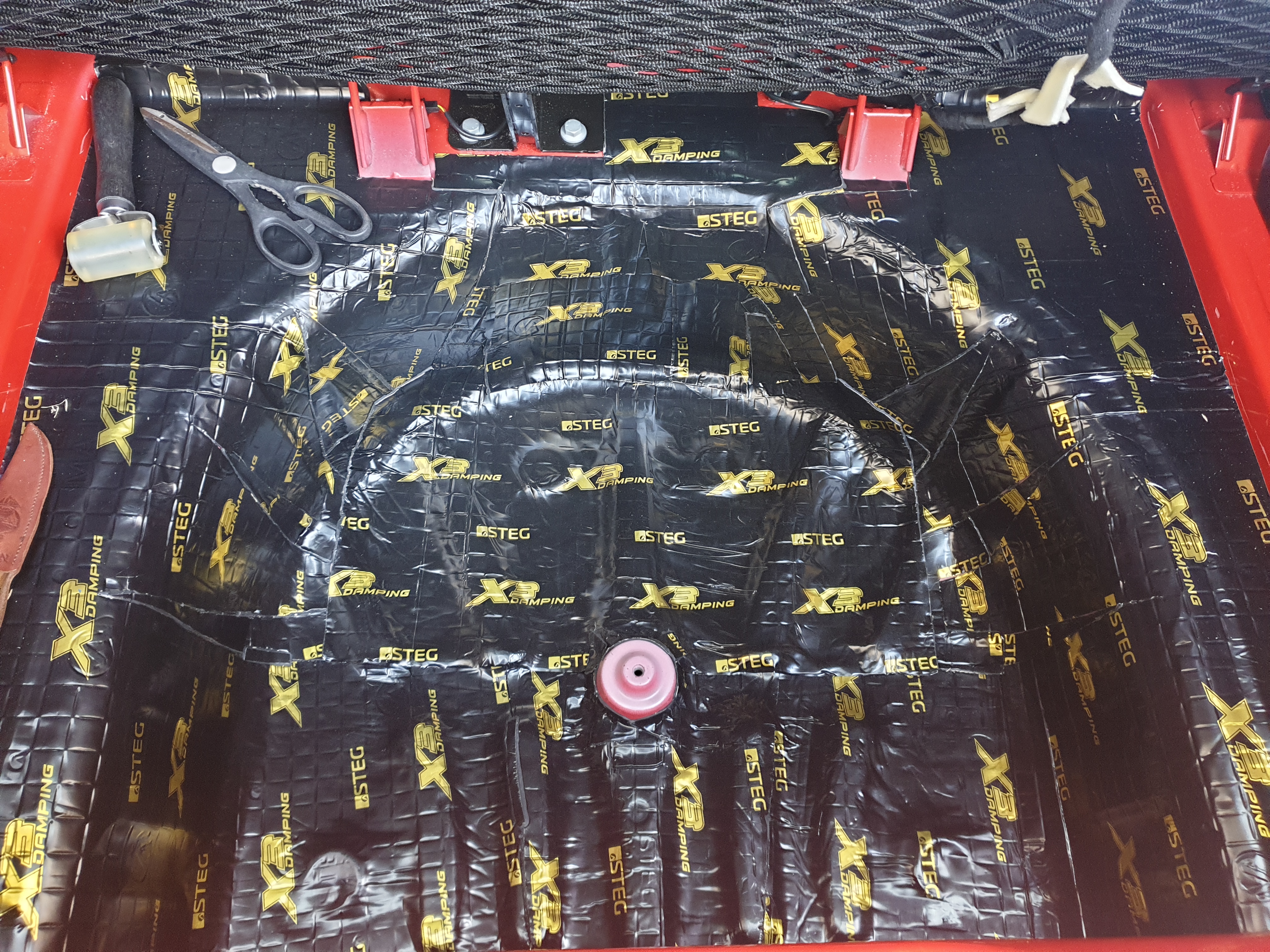 Vandaag het geluidsisolatie project afgerond, ontdreunings plaaten en dempingsfoam aangebracht in deurpanelen, onder de achterbank en in de kofferbak achter de nieuw aangebrachte bekleding.
