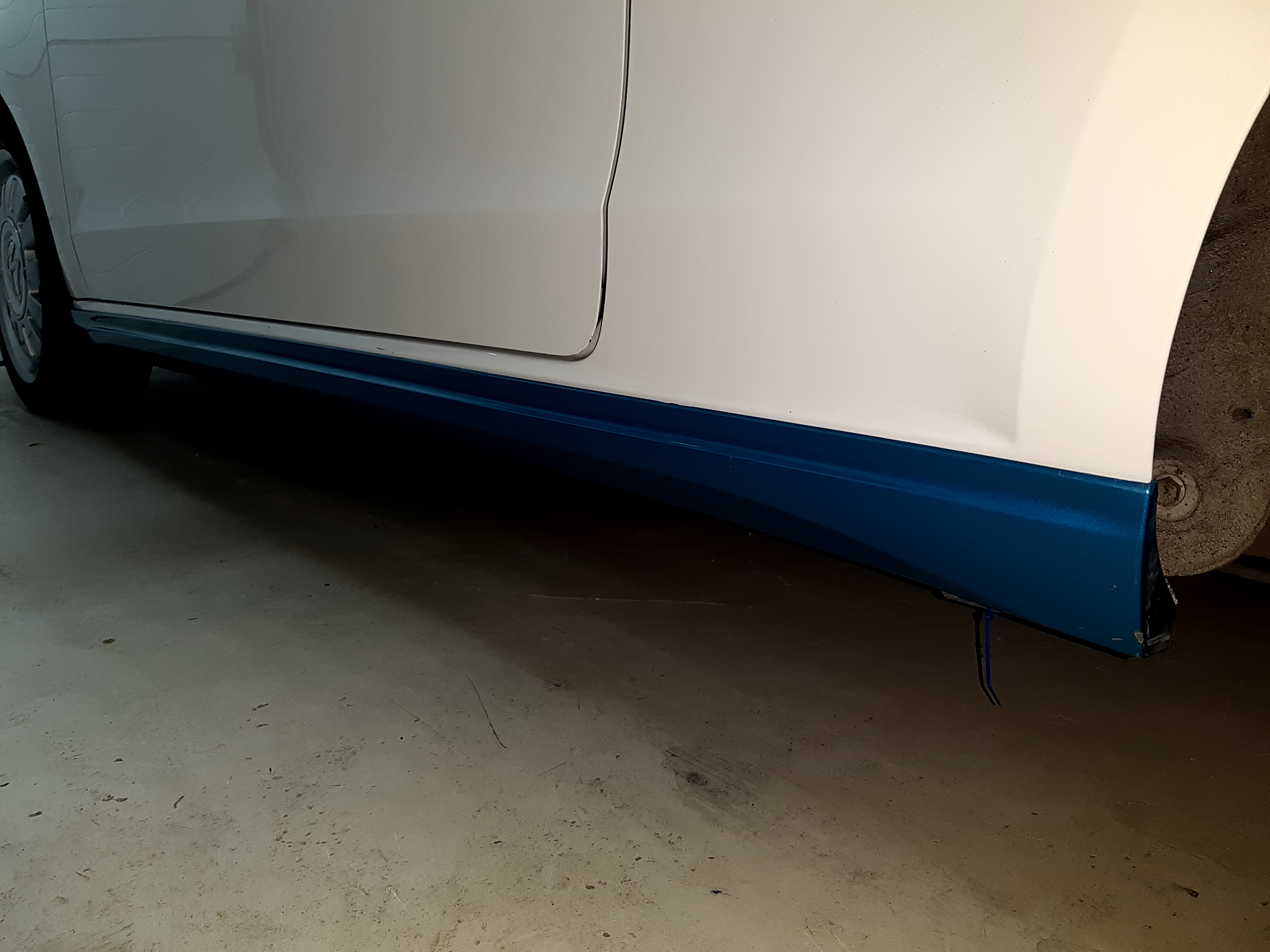 Een witte Move Up uit 2012 van 1e eigenaar met pas 49.000km ervaring. Smetteloze auto zonder schadeverleden. Gelijk een set fabrieksnieuwe GTI velgen gekocht bij Powerwheelz en een High Up stuur bij FZN parts. Na 4 maanden mocht mn vriendin weer zelfstandig autorijden en wilde mijn Up overnemen. De 17inch er onder uit en een set Classic velgen met winterbanden eronder en daar ging ze.. Ik weer opzoek naar een Up voor mijzelf. Deze keer een 2013 High Up met panoramadak, weer origineel NL en 1e eigenaar. Kleur is Poolblau, lijkt soms wit. Kan er nog niet echt aan wennen.... Titel verklapt het al, deze Up wordt een project. Ga hem overspuiten in een andere kleur, en als ik toch bezig ben, dan maar ombouwen naar een facelift GTI.