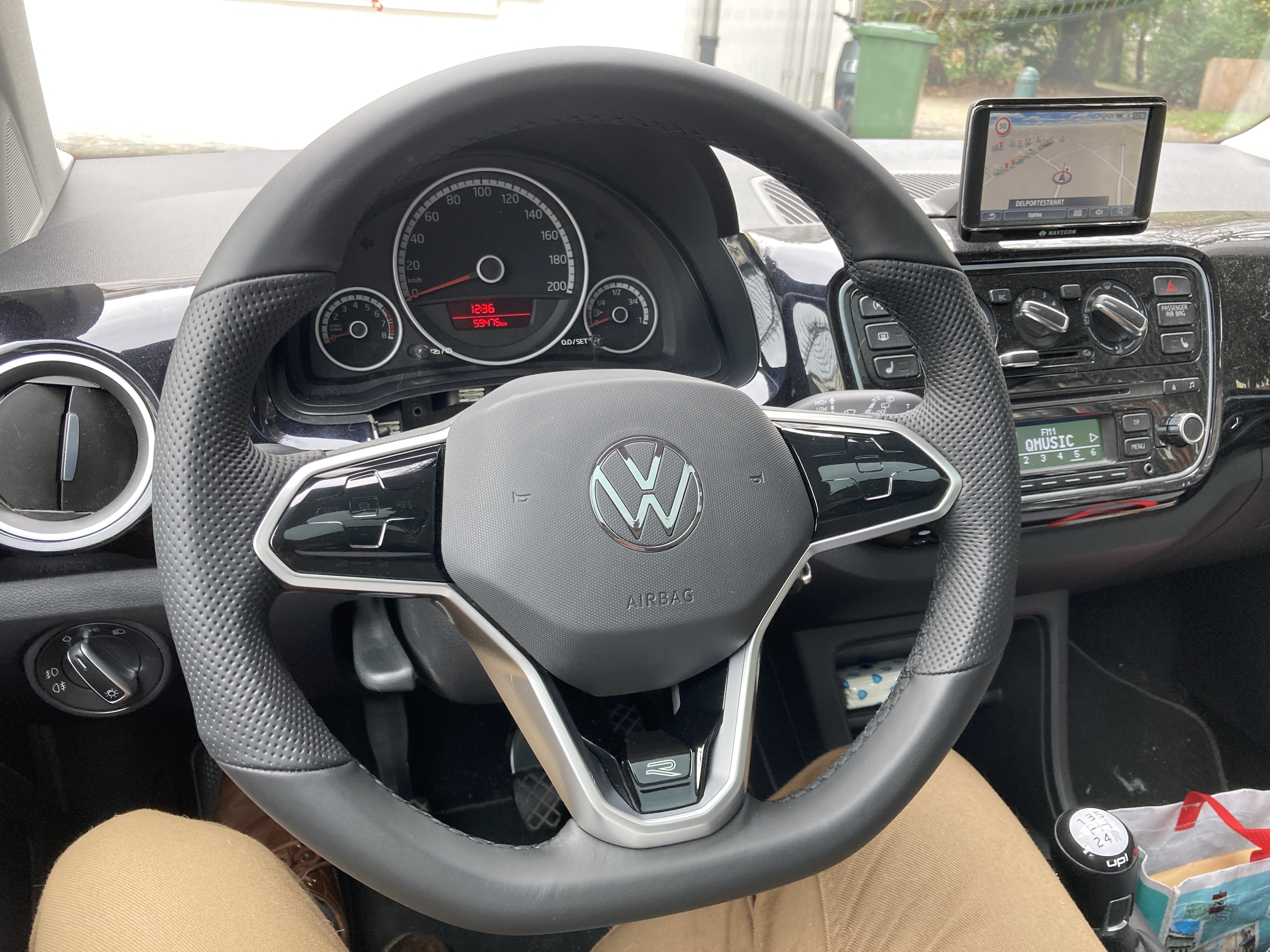 In mijn Up staat een mooi lederen sportstuurtje waar hij destijds mee geleverd is geworden maar nu begon het toch te kriebelen om dat eens te vervangen door een ander sportief MF stuurtje. Er zijn zoveel mogelijkheden dat ik er initieel niet uit raakte welk ik nu zou kiezen totdat ik deze Golf VIII r-line versie tegenkwam… net geleverd en in het echt veel mooier dan op foto… 😎😎😎