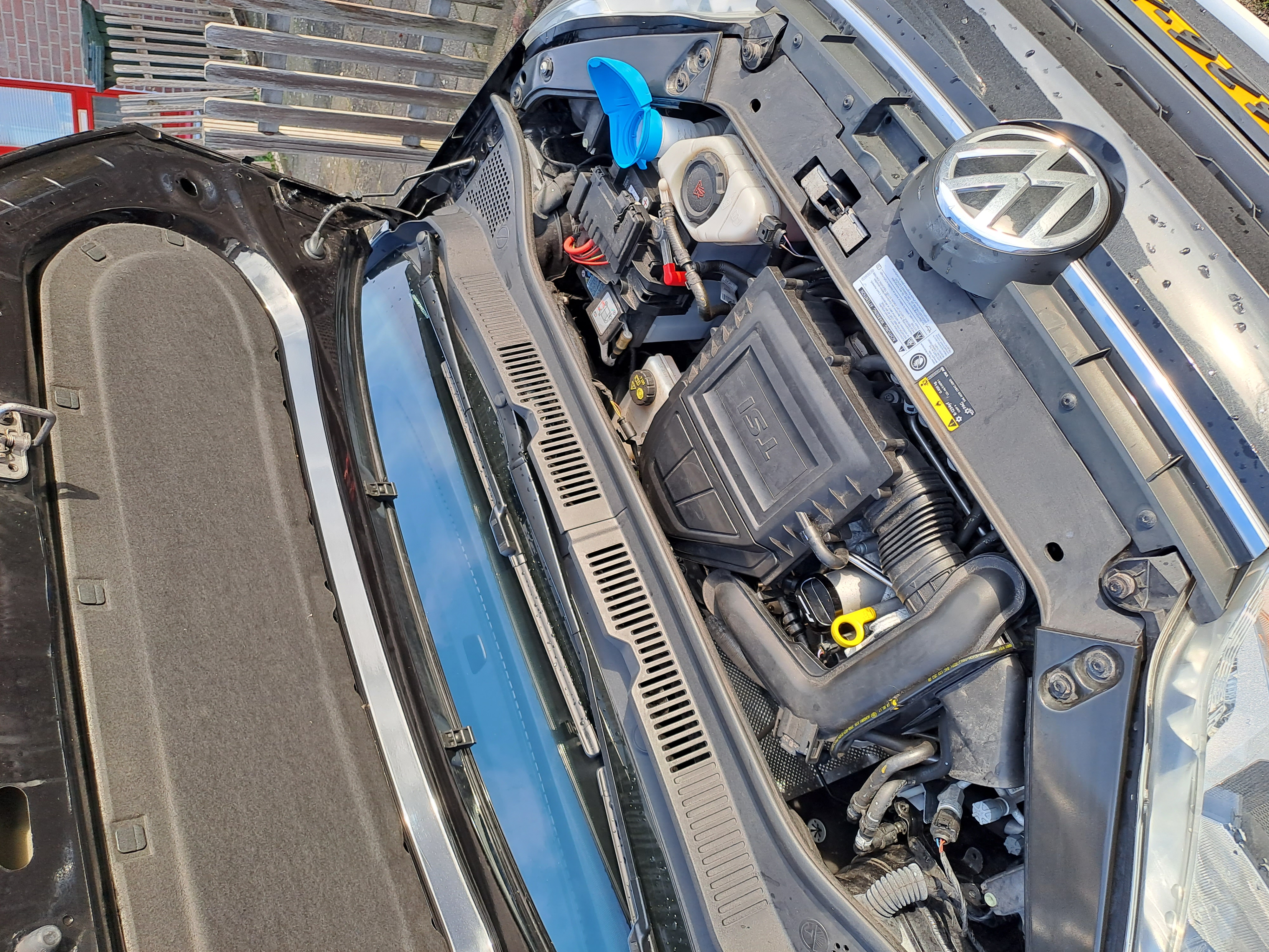 Ook onder de motorkap is er al wat aangepast. Ruitenwisser sproeier dop.