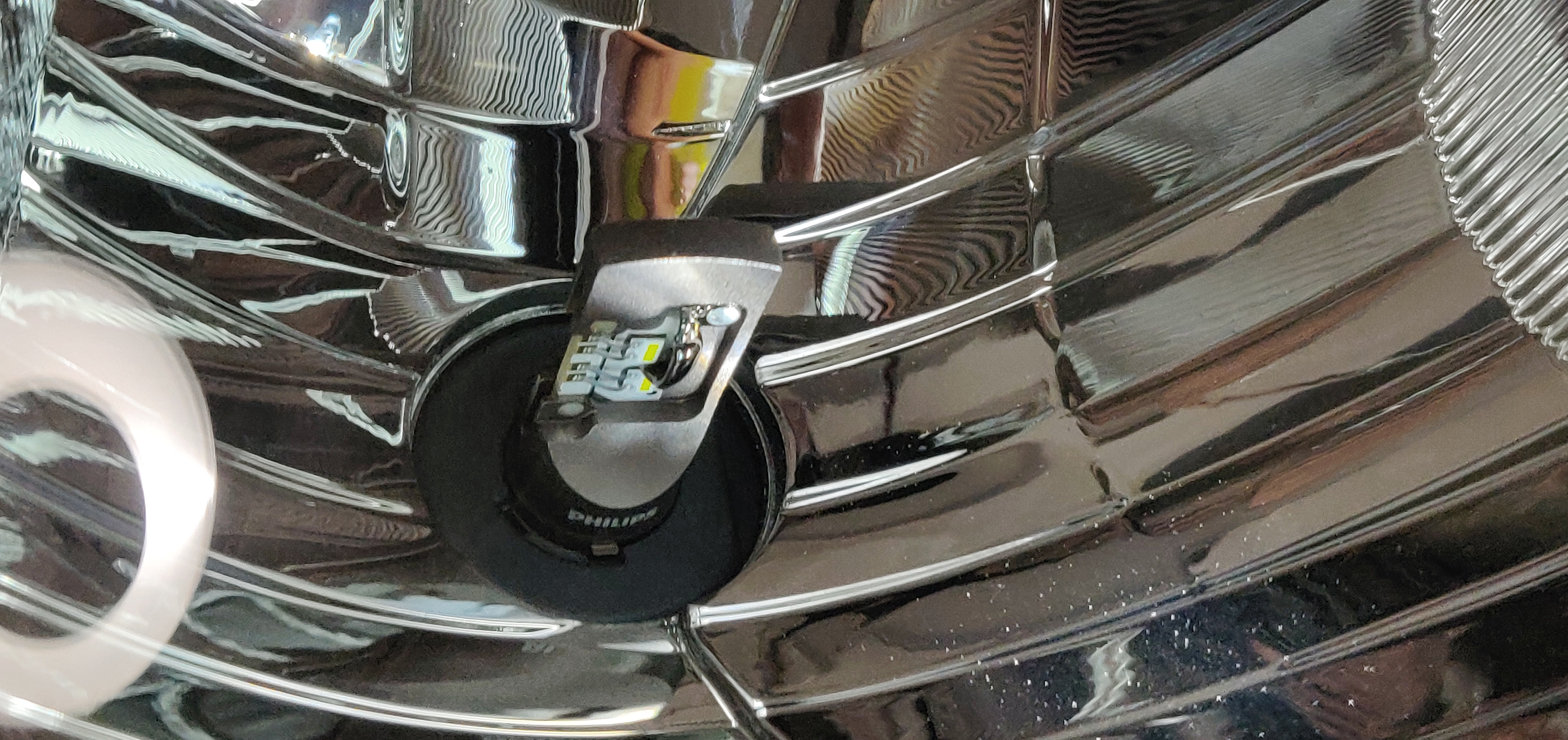 Deze foto vergeten, niet de allerbeste kwaliteit maar zo kun je beetje zien hoe het eruit ziet als de H4 Led geplaatst is. (en vΓ³Γ³r die tijd)