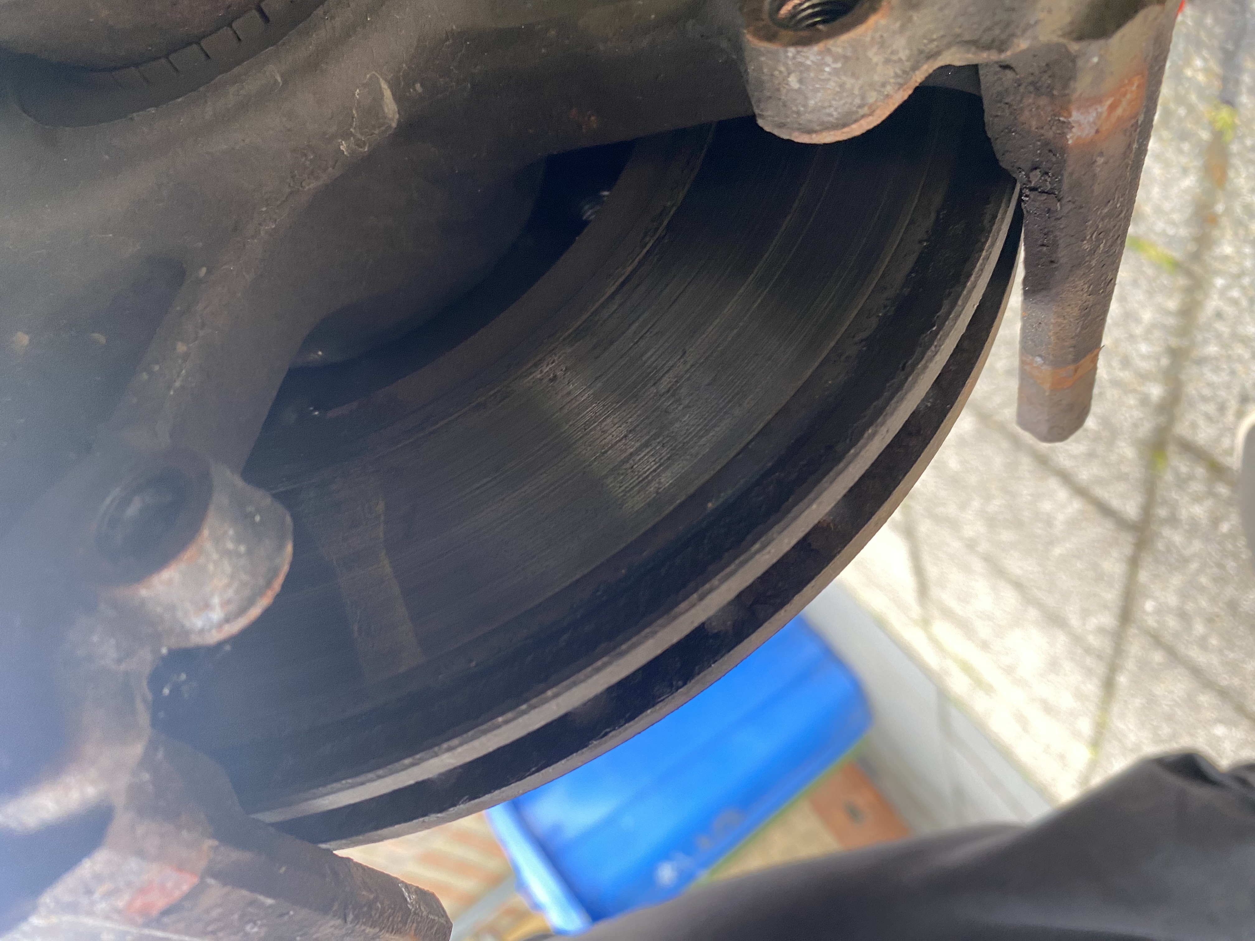Ik heb vandaag de remvloeistof vervangen en zag bij de remmen dat de remblokken en schijven aan de binnenkant niet helemaal afslijten. De bovenste 5 mm slijt niet tot nauwelijks. Ik hoop stiekem dat Dennis meeleest want dit zijn van die dingen die je leert met ervaring.