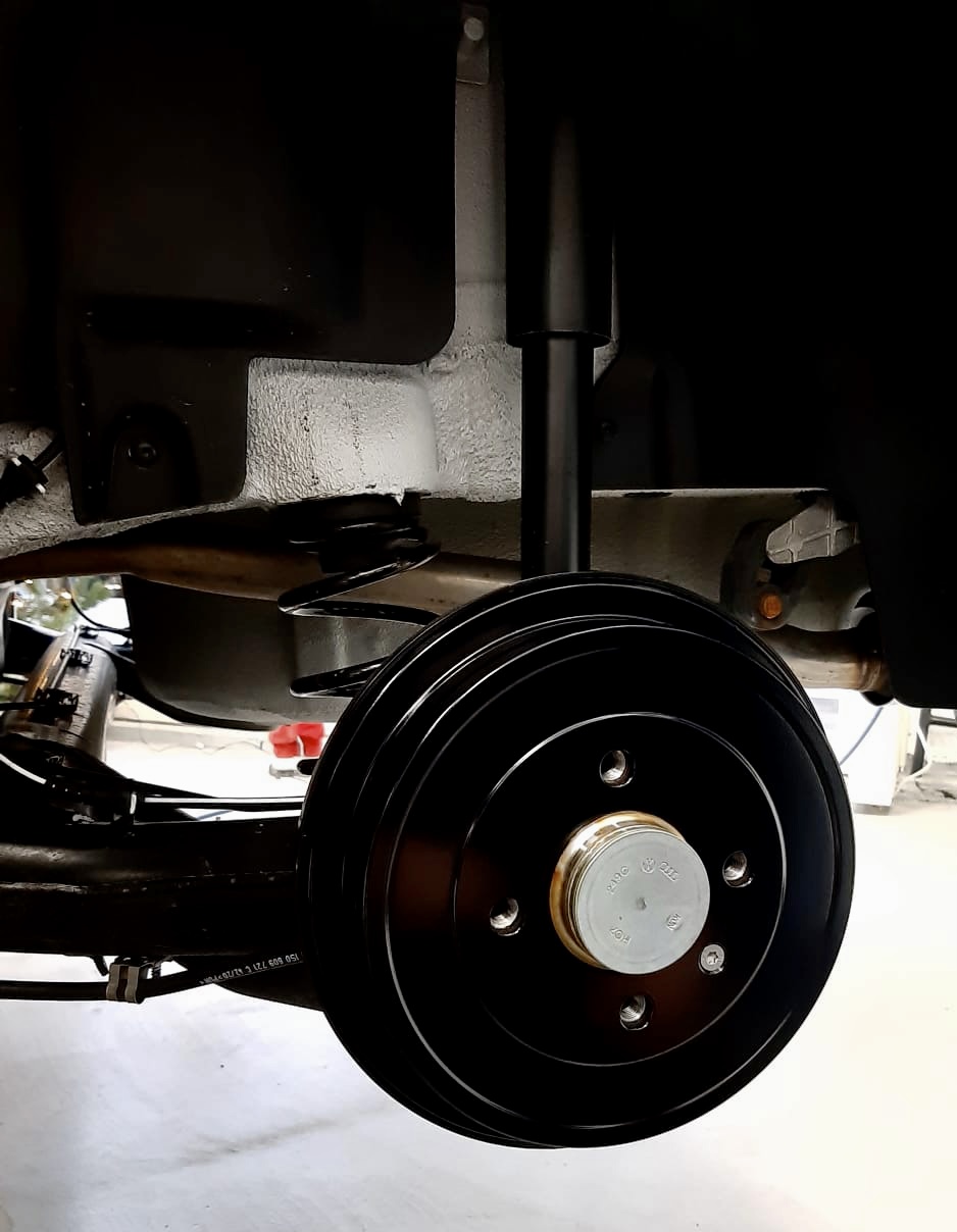 Vandaag worden de remtrommels gespoten....geen overbodige luxe blijkbaar. Dit is weliswaar de binnenzijde, maar het oogt niet echt fraai als de buitenzijde er straks ook zo uitziet. door pekel etc. Alles strak in de zijdeglans 2k lak.