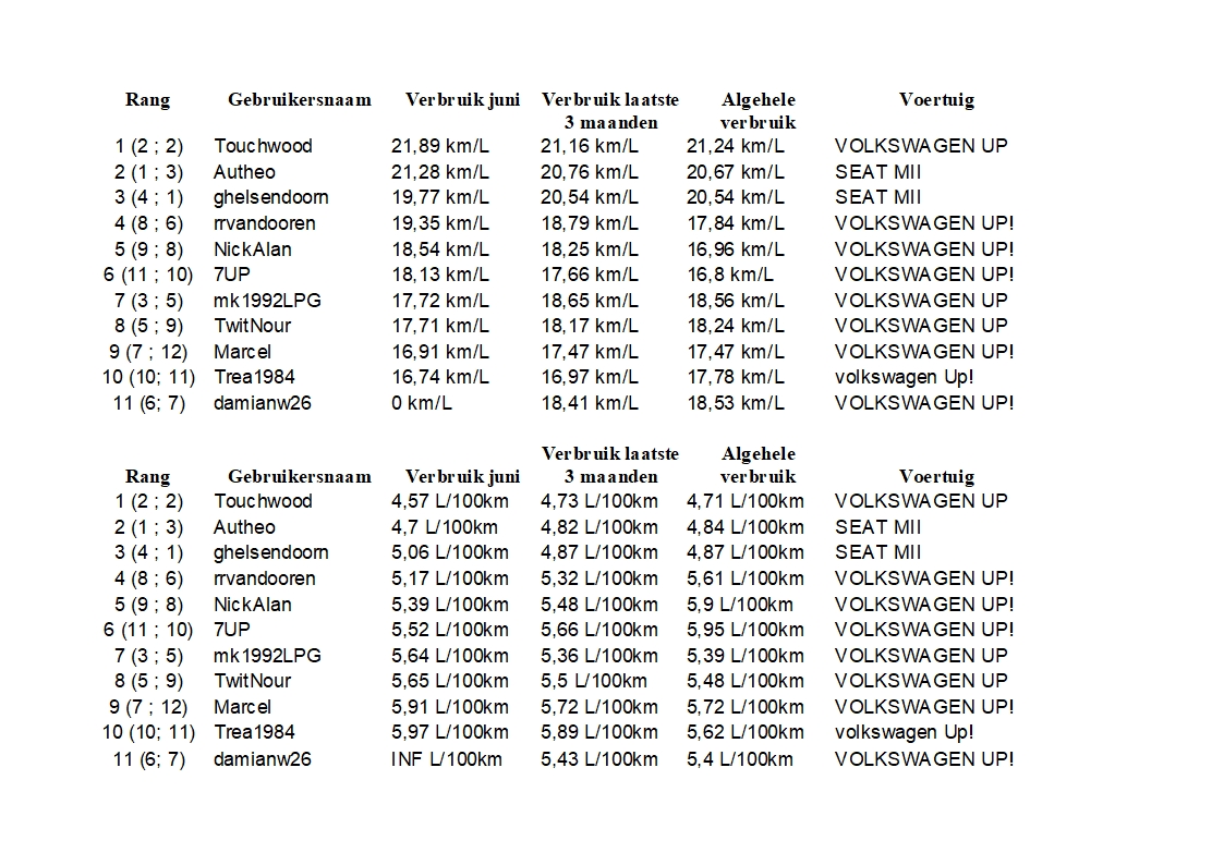 Heeft iedereen z'n tankbeurten weer ingevoerd? Morgen wordt het overzicht voor juli weer gemaakt.