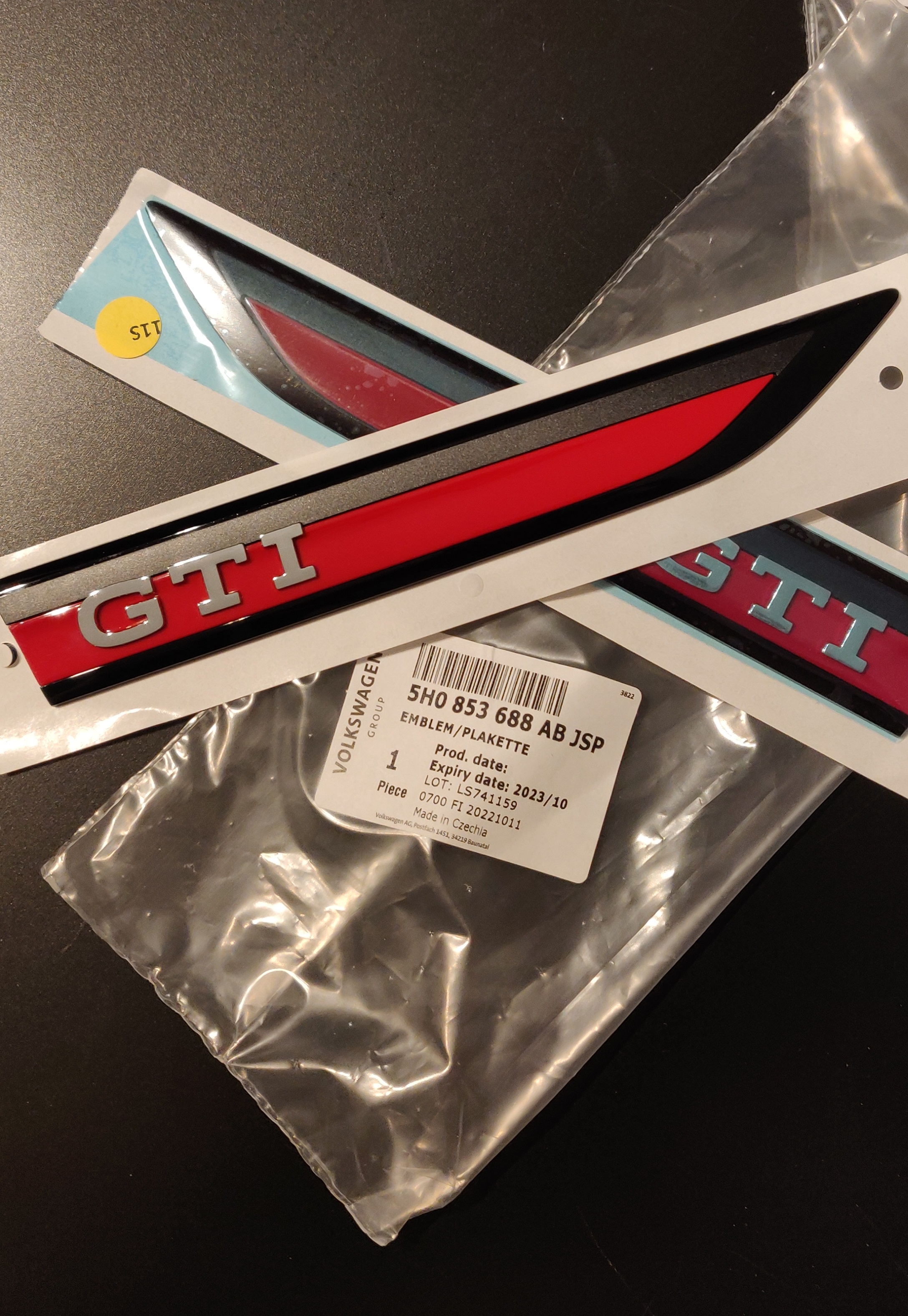Omschrijving onderdeel: set zijlogo's van een Golf 8 GTI ter vervanging standaard of ?
