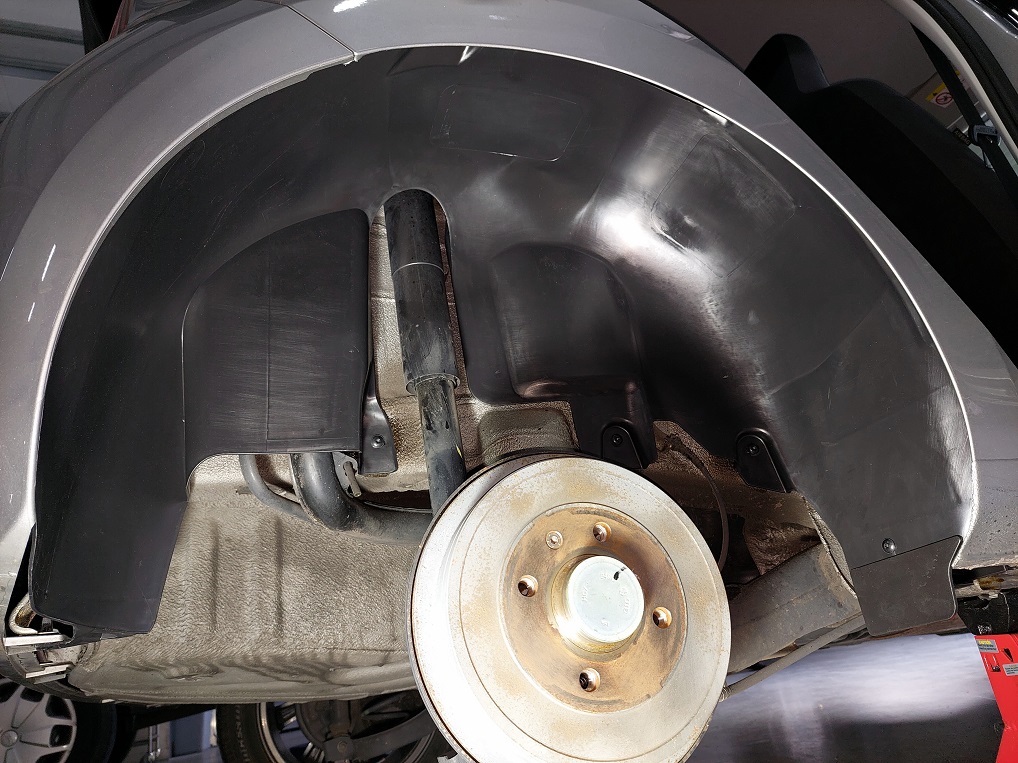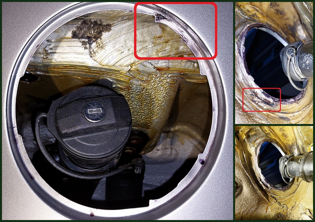 Echter had ik achteraf eigenlijk 1 ding anders moeten doen; even de tankklep uitnemen om de boel nog wat beter te kunnen inspecteren. Ik heb de wielkast bij montage van de modderkuipen wel even extra beschermd met wat Tectyl Amber, maar voor het mooie hadden eigenlijk die tankklep en tankkom er even uit gemoeten om het nog beter schoon te maken en extra te beschermen. Maar dat is achteraf ... Hier een fotootje van tijdens het Tectyl spuiten; Ik zit er nog aan te denken om binnenkort de wielkuip er weer even uit te halen en alsnog de tankkom eruit te halen en de boel nog even extra na te behandelen. Want als het even kan wil ik eigenlijk voorkomen dat m'n mooie Citigo op den duur gaat roesten bij de tankklep.