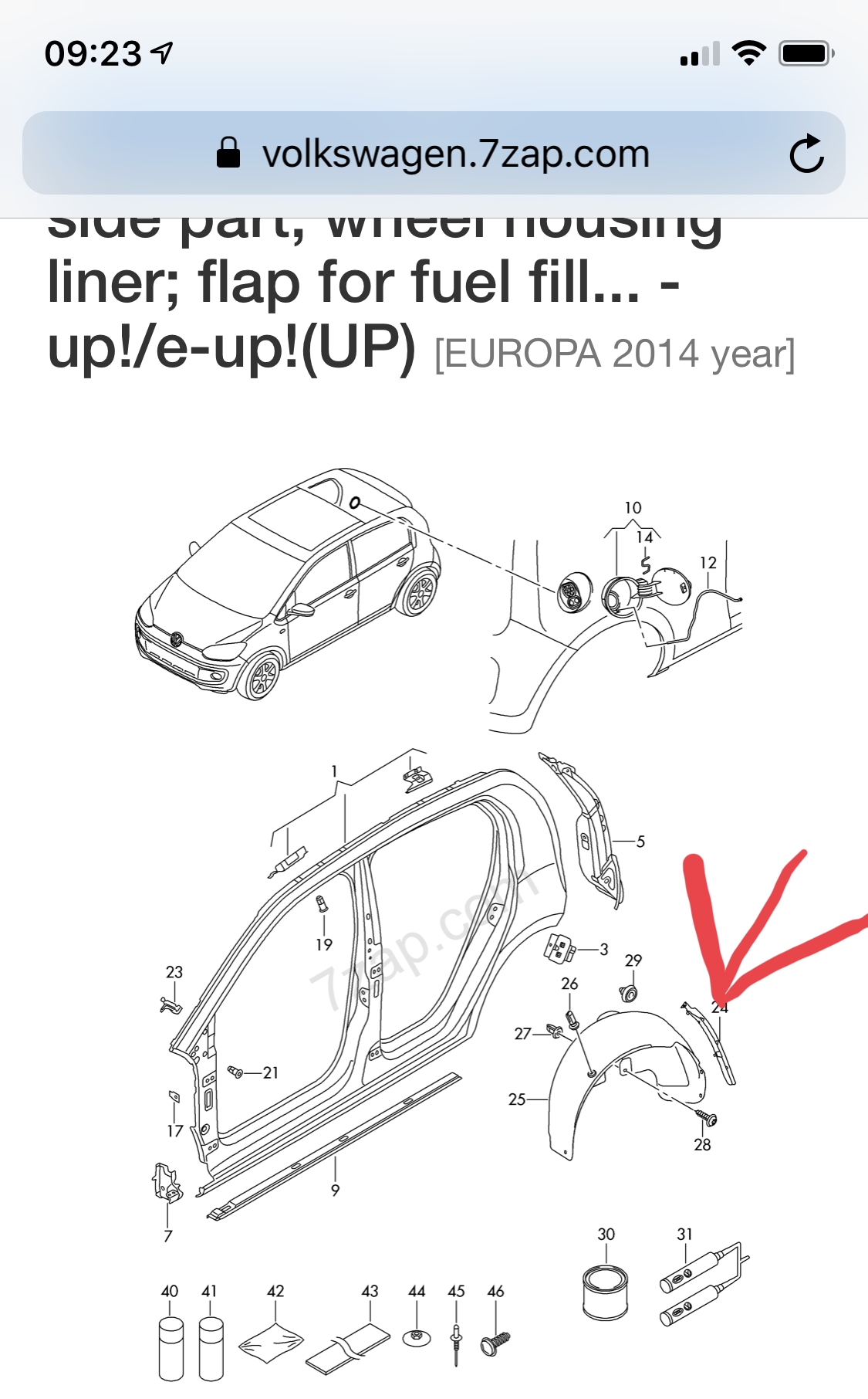 In de bijlage 2 screenshots van ETKA. Op die met de rode pijl zie je de wielkuipen afgebeeld waarbij het onderdeelnummer met 12E begint. bij een E-UP en zie dus ook het extra steuntje wat men in de Duitse handleiding bij de achterbumper plakt.