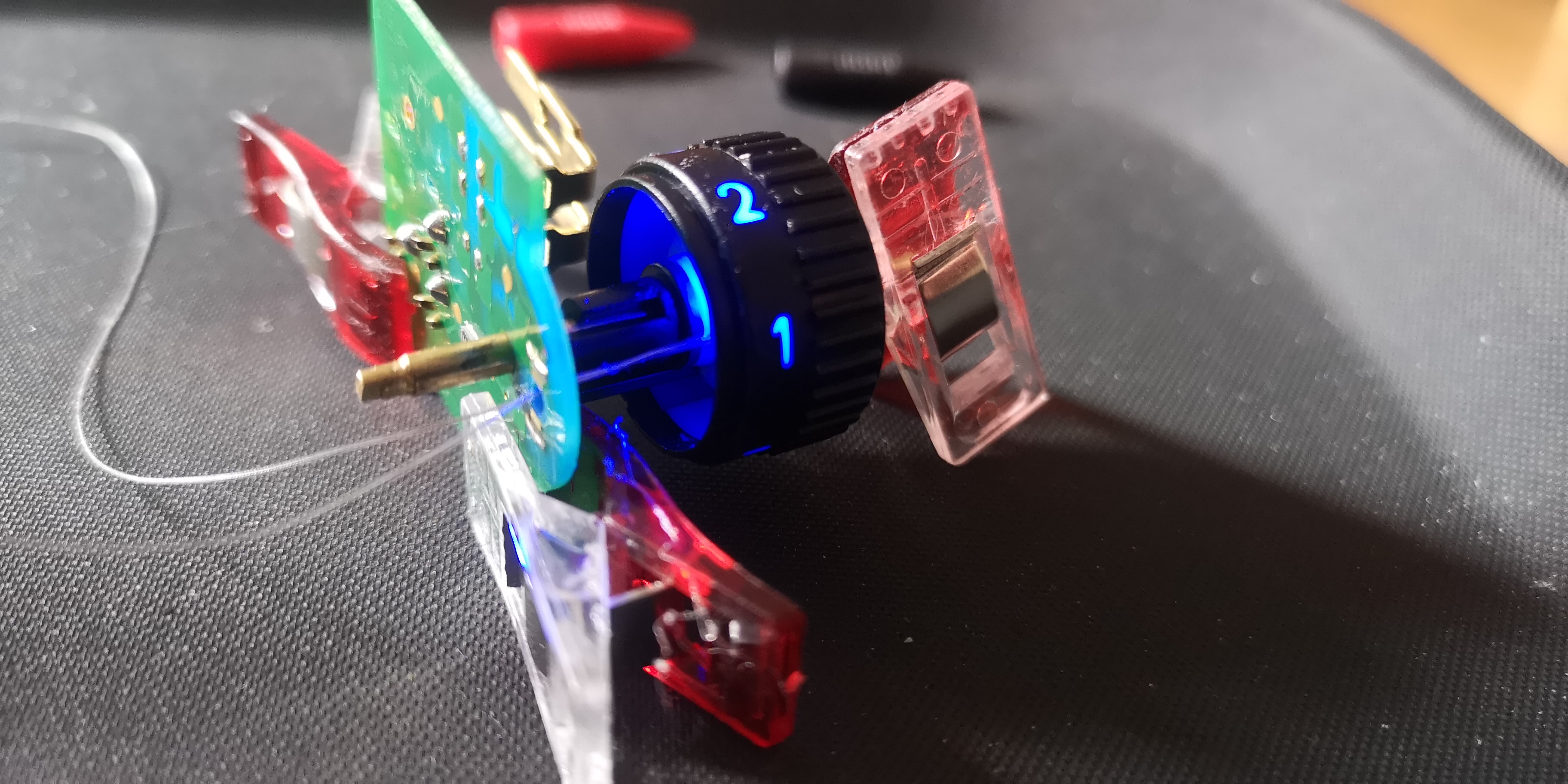 Ook heb ik al op een raamschakelaar de blauwe microleds geplakt, en de bedrading door de printplaat heen gemonteerd, en ook door de behuizing van de schakelaar gevoerd.