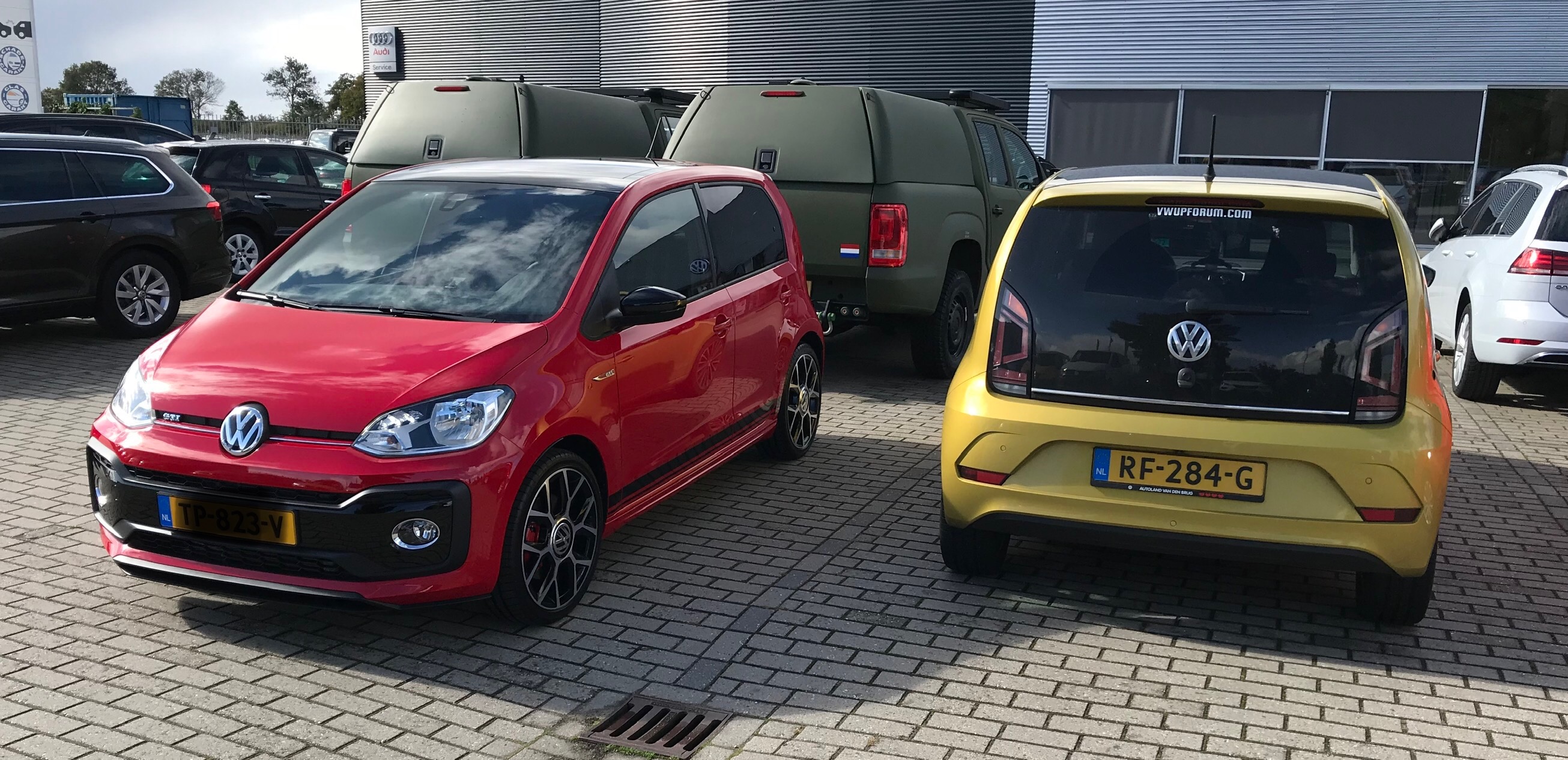 Nog een foto van de oude en nieuwe op het terrein bij de dealer. De forumsticker heb ik achtergelaten.... meer foto's volgen. Het weer zit nu niet echt mee momenteel.