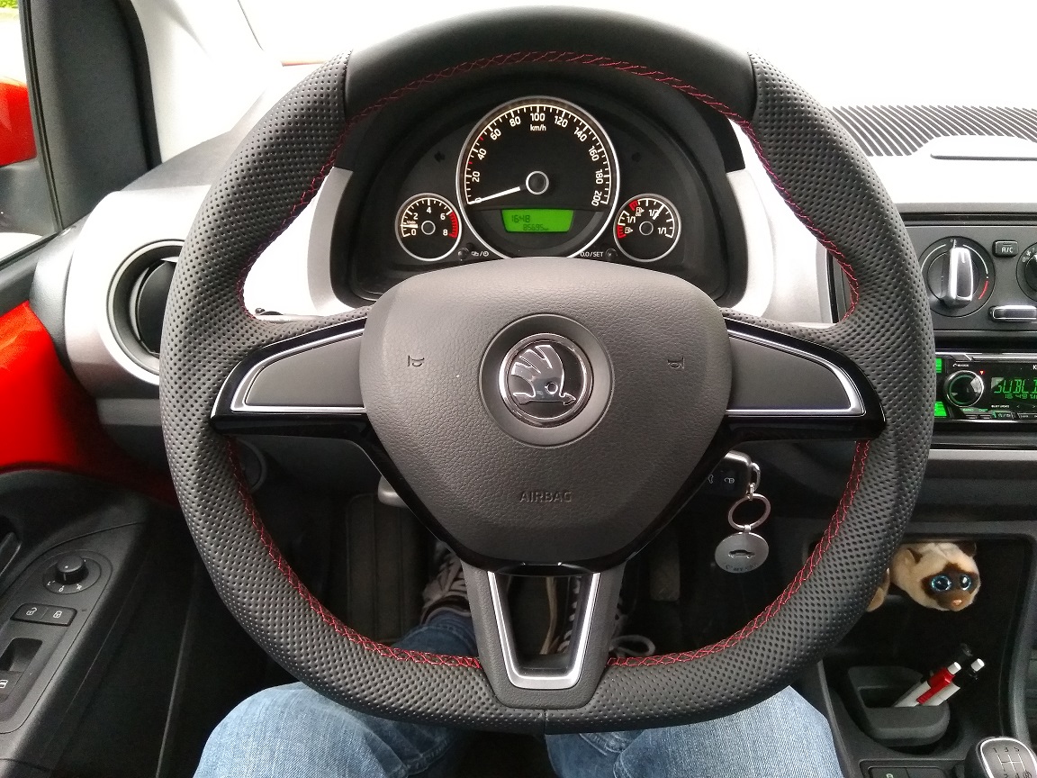 Ik begreep van de vorige eigenaar dat hij zelf ook al wat zaken had toegevoegd aan de auto zoals; een originele middenarmsteun, Move&Fun navigatie/audio, setje rubber vloermatten, wielkuipen aan de achterzijde (origineel voor een VW e-Up), en hij had nog een aantal zaken geprogrammeerd; bochtverlichting, achterlichten aan bij dagrijverlichting aan, "teardrop wipe" en automatisch vergrendelen van de deuren bij wegrijden. Je zou bijna denken dat er niks meer over is gebleven om te modificeren.