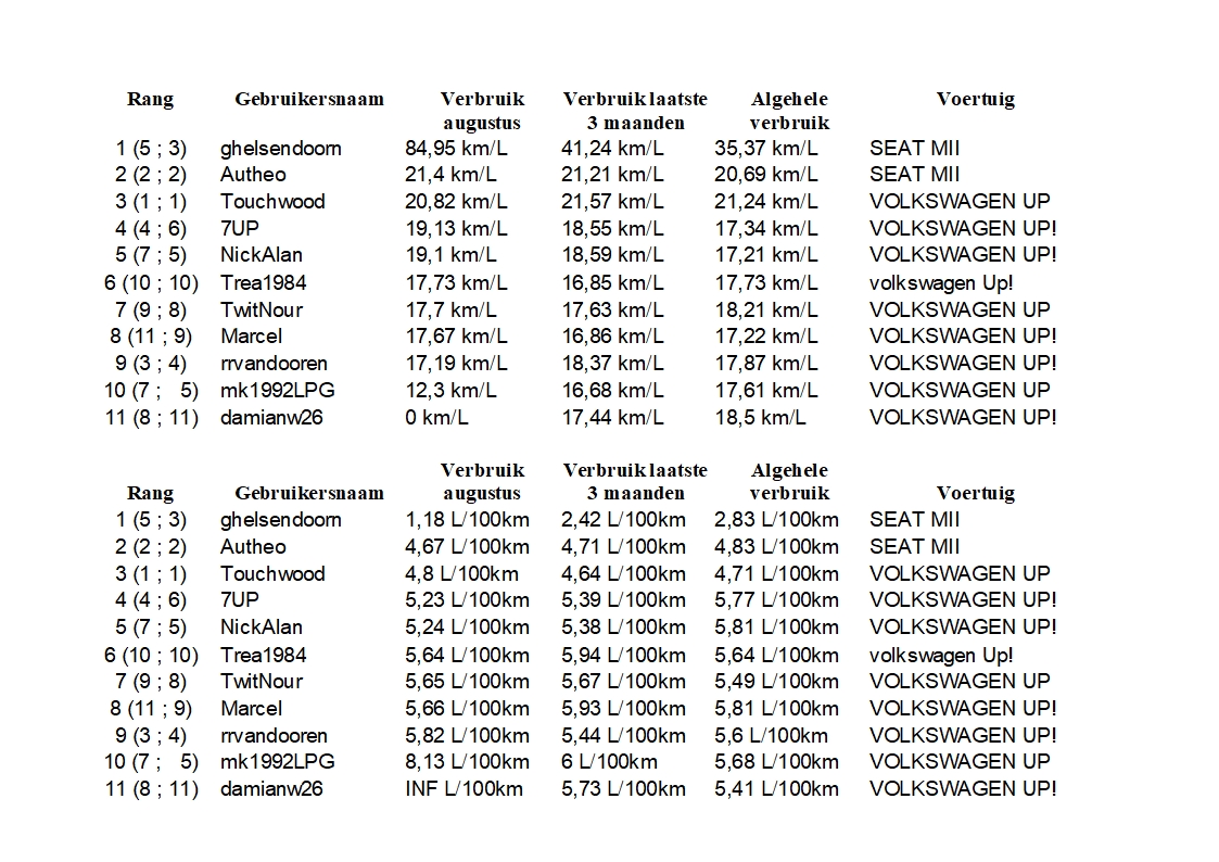 Heeft iedereen z'n tankbeurten weer ingevoerd? Morgen wordt het overzicht voor juli weer gemaakt.