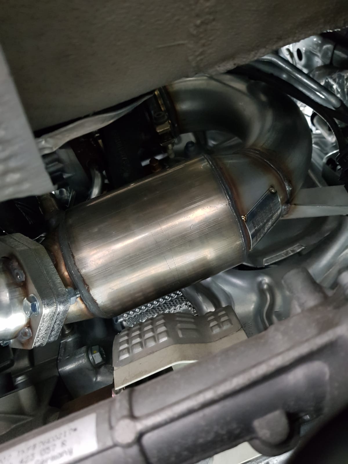 # volledig Milltek, incl.downpipe met 200 cells racecat, de resonated versie met gepolijst eindstuk, mooie muziek