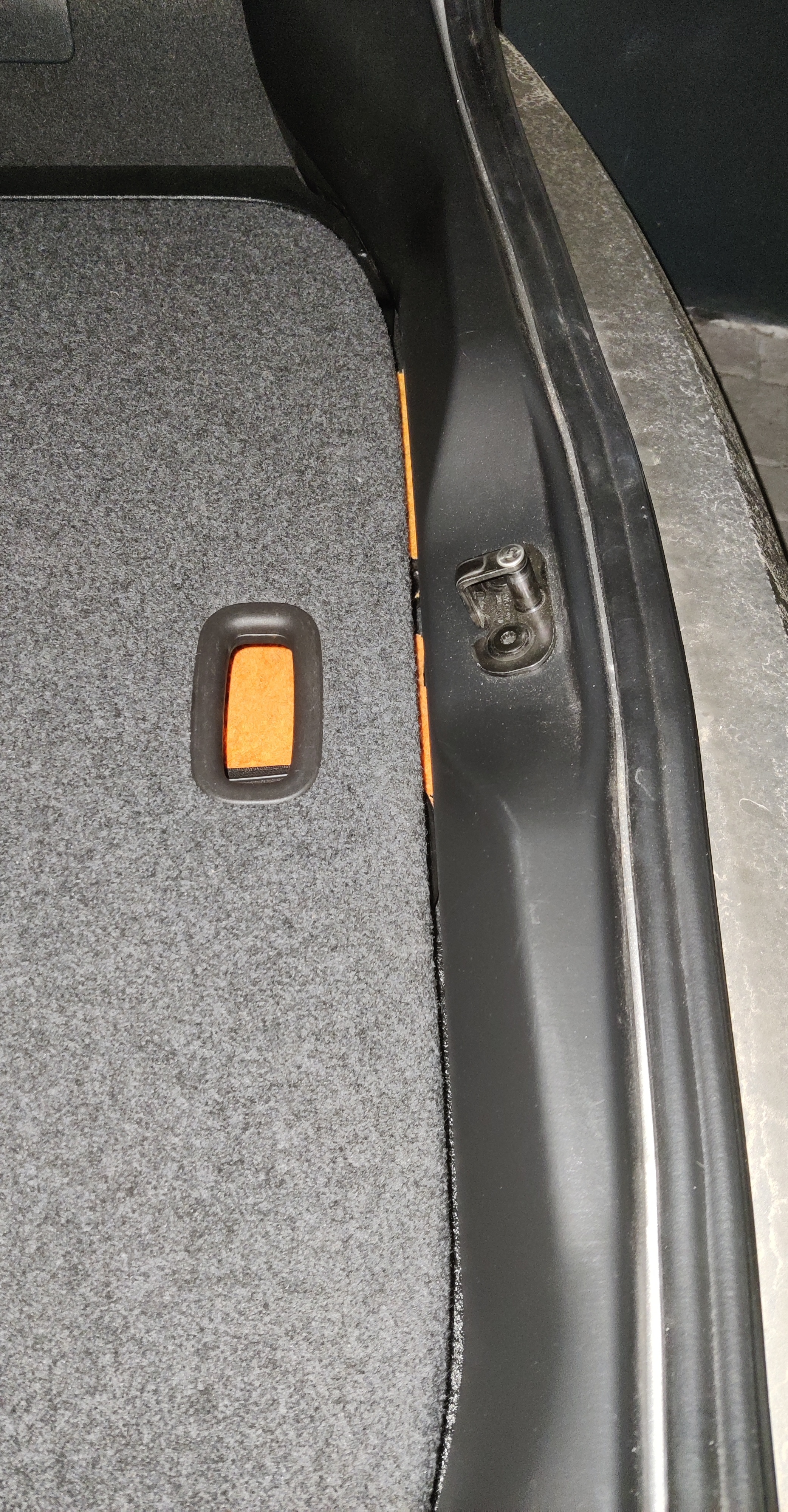 Sluit gewoon aan op de bovenste laadvloer. Vanaf de binnenzijde zie je links en rechts nog een klein gedeelte van de carrosserie , maar dat komt natuurlijk door dat de foto vanaf de voorzijde is gemaakt. Dit is dan ook helemaal niet zichtbaar als je aan de achterzijde staat en in de kofferruimte kijkt:)