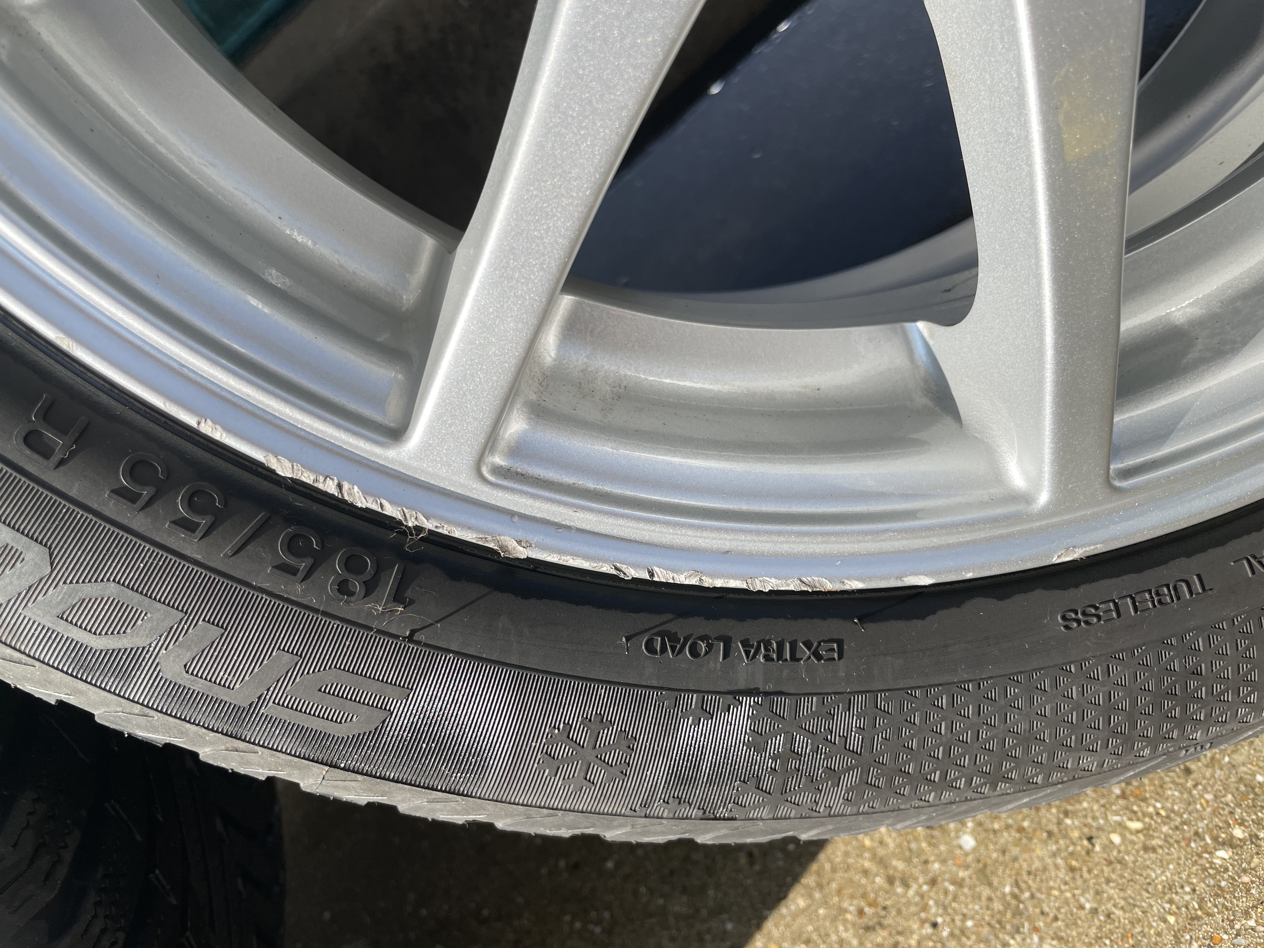 Zoals op de foto te zien, hebben deze sportieve velgen lichte stoeprandschade. Maar daar is de prijs ook naar.